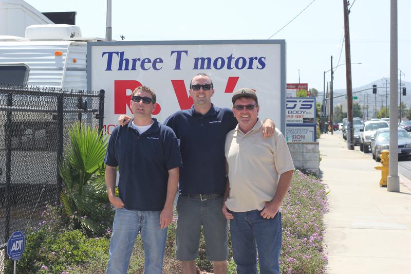 Three T Motors RV started as a wholesale RV dealer in San Diego California. We have grown into a Family owned and run RV Dealer in San Diego, Southern California. We are relaxed and low pressured. We have helped people from as far away as New Zealand, Germany, Canada, Mexico and Korea with Motorhomes and Trailers. Three T Motors RV takes great care of our customers, and we sell them quality RV’s for less money. We have picked people from the Airport and Train Station, and helped them find hotel rooms for the night before they purchase an RV and happily drive it home.